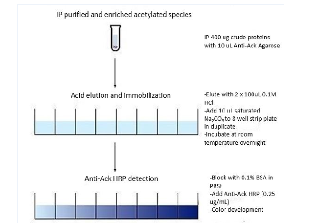 5) 在37℃下添加HRP標(biāo)記的抗乙酰化抗體(用0.1%BSA in PBSt稀釋到0.25 ug/mL)30分鐘。