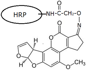 Afaltoxin B1 methylcarboxyloxime linked to HRP via amine acylation. AFB1/HRP molar ratio:1:1.