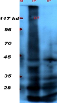The affinity isolation and enrichment of the tyrosine-phosphorylated species in mouse spleen lysates with anti-phospho-tyrosine antibody (ICP9805), followed by immuno-blotting detection with this antibody conjugated to HRP (ICP9902).