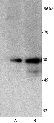 These antibodies were tested with human and mouse cell lysates and mouse tissue (brain) extracts to detect Jun NH2-terminal kinases (JNKs). JNK has a molecular weight ranging from 38-56 kDa, which is masked up by the IP IgG bands. Tests using the HRP conjugated anti-JNK do not require secondary Ab, eliminating interference from IgG bands.