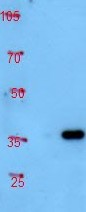 The antibody recognizes the 37 kDa GADPH protein as a single band.