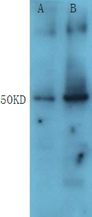 A: 5 μg of His-tag fusion protein (50 kDa) B: 20 μg His-tag fusion protein (50 kDa)