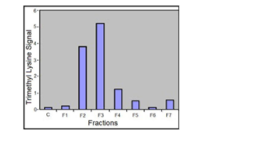 Elution profile of the trimethyl lysine signal from the affinity column (anti-trimethyl lysine agarose), sample loaded is from the trypsinated mouse spleen extract.