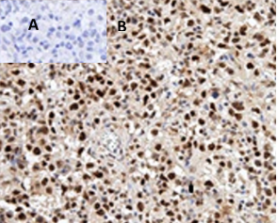 Immunohistochenstry staining using Goat anti-Mouse IgG, HRP (ICP9703) (A) and Goat anti-Mouse IgG, Polymerized HRP (ICP9898) (B) as the secondary antibody