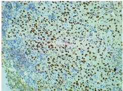 Immunohistochemistry staining of paraffin-embedded human lung cancer tissue with mouse Anti-MLH1 using product (ICP9998) as the 2nd antibody